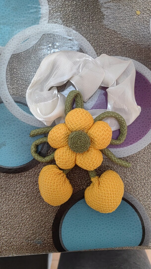 加恩倍儿童针织花朵发圈甜美百搭丸子头发绳森系田园风大肠圈ins风发圈 黄色+粉色大肠针织发圈一个