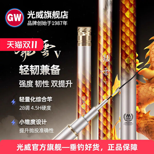 光威(GW) 光威鱼竿龙云三代五代超硬台钓竿 碳素鱼竿超硬鱼杆28调鲤鱼黑坑 5.4m 龙云五代