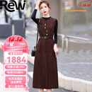 Rewi奢侈高档品牌连衣裙女2025秋季新款马甲背带气质修身打底套装裙子 咖色 【高端礼盒】 L 【建议105-115斤】