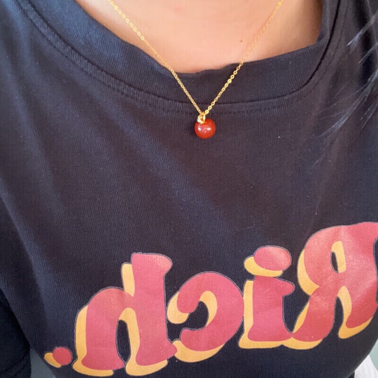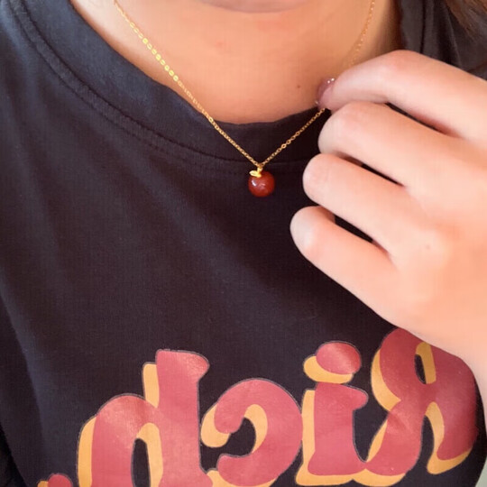 买来送自己的生日礼物,因为自己很喜欢苹果,加上快平安夜了,看到这个感觉整个很精致可爱,玛瑙也很好看,看着品质很好,戴着放心,是足金的,有证书,质量和材质有保证,送的礼盒也很好看高级,很满意的一次购物。