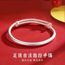梵际足银9999光面圆肚银手镯女推拉时尚年轻款银镯子送女友情人节礼物 古法推拉银手镯约19.7±0.5g