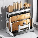 【家庭必备】304不锈钢厨房刀架置物架砧板架一体筷子刀具收纳架 【双筷筒台面款】砧板架+锅盖架+挂钩*4