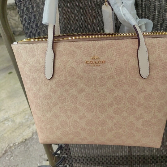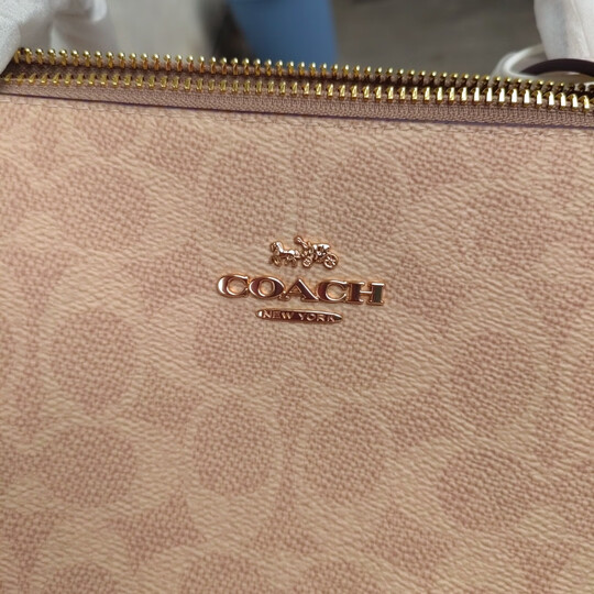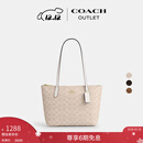 蔻驰(COACH)【礼物】奥莱女士女包经典标志FIONA 24号拉链托特包单肩包手提包 IM/沙黄色/粉笔白色