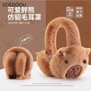 VOEDOOU可爱卡通卡皮巴拉冬季保暖耳罩儿童男耳捂子女生耳套暖包折叠毛绒 本熊色 12*20cm