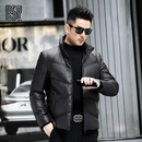 BG GLAMURB轻奢品牌真皮皮衣男士羽绒服短款立领超柔绵羊皮夹克大码加厚外套 黑色 L