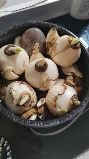 这个水仙真的很不错,昨天收到的泡了一晚上就已经冒出绿芽了,期待开出美丽的花来。