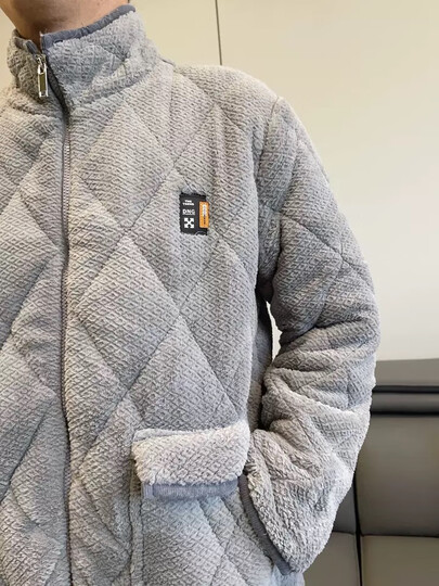 CA BRIDA轻奢品牌男士睡衣男冬季三层加厚加绒珊瑚绒夹棉袄可外穿家居服 Y23511迪灰 L 【建议120-140斤】 x 3层