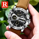 瑞之缘(ONTHEEDGE)男士户外手表多功能闹钟防水夜光潮流时尚高颜值双显腕表休闲运动 双显款-银壳棕带【可佩戴游泳+夜光闹钟】
