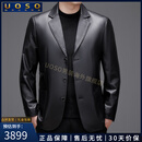 UOSO轻奢品牌男装秋季真皮皮衣男士绵羊皮韩版修身短款外套 黑色 5XL 195 适合92-100KG 咨询客服领优惠