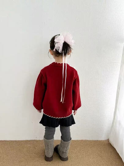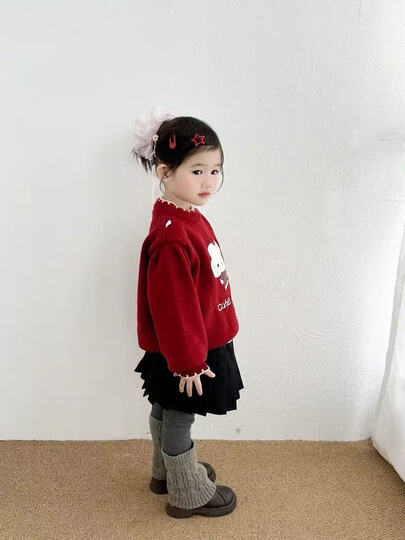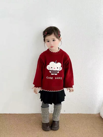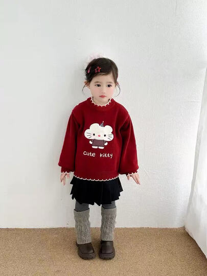 靓贝城堡女童毛衣秋冬装2025新款儿童百搭针织衫宝宝加厚打底衫保暖毛线衣 米杏色 120