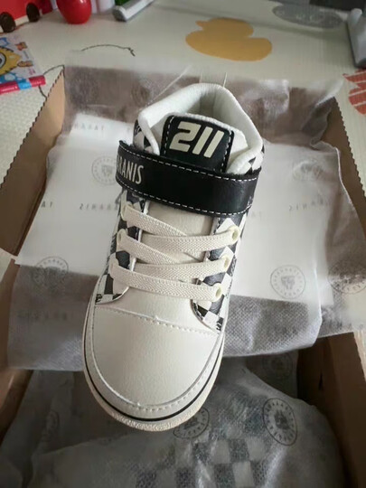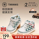 泰兰尼斯秋冬季新款学步鞋中高帮男宝宝鞋气泵防滑防踢机能鞋子 绿/格纹 秋季超纤 25 鞋内长16.0cm适合脚长15.0