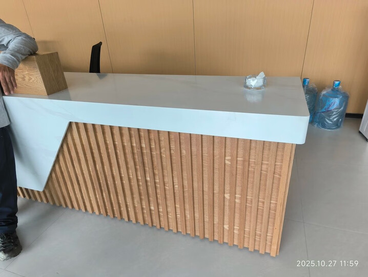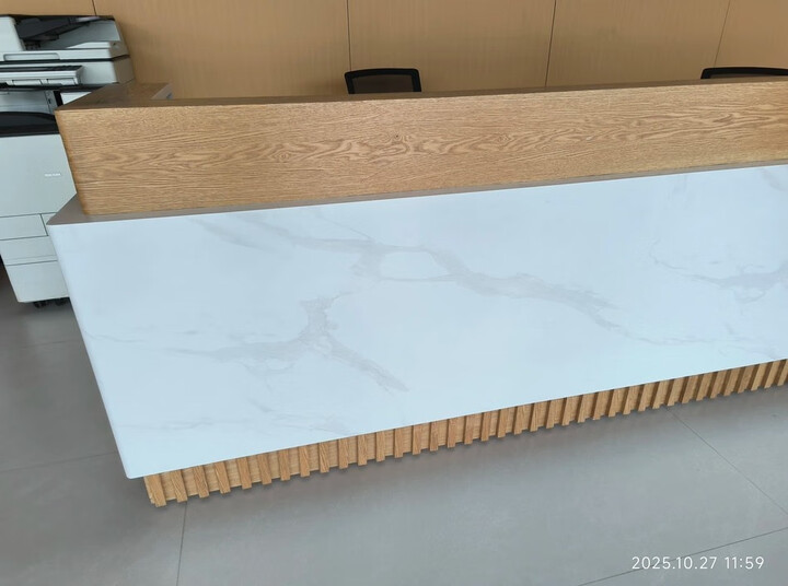 公司前台接待台服装店烤漆收银台美容院前台简约现代酒店大厅吧台 鱼肚白+原木色仿大理石纹 160*60*100cm