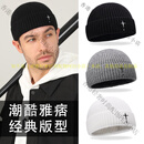 嫵(WOO)毛线帽男经典雅痞瓜皮针织帽男士潮牌痞帅日系冬天保暖羊毛帽子 黑色白标 30%羊毛款 L 均码(55-60cm)