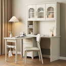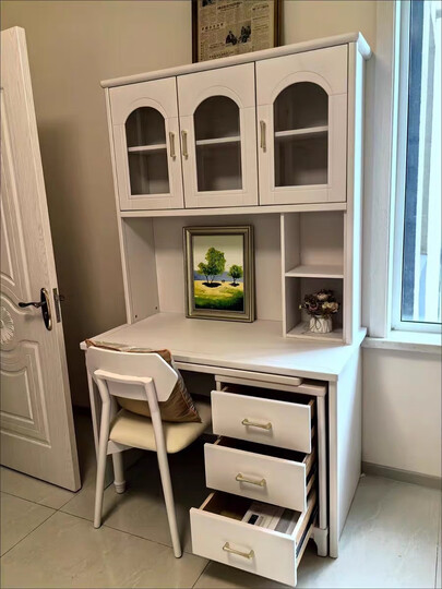 实木书桌书架一体折叠转角电脑桌奶油风写字台学习桌带书柜办公桌 奶油白1.2米书桌+椅子【可旋转桌面+不分左右】 送货上楼包安装