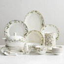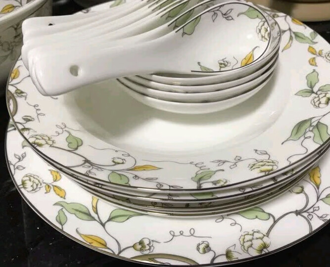瓷秀源唐山骨瓷中式碗碟套装家用碗盘子骨瓷饭碗餐具套装陶瓷碗筷礼盒 56头金钟碗双耳锅版