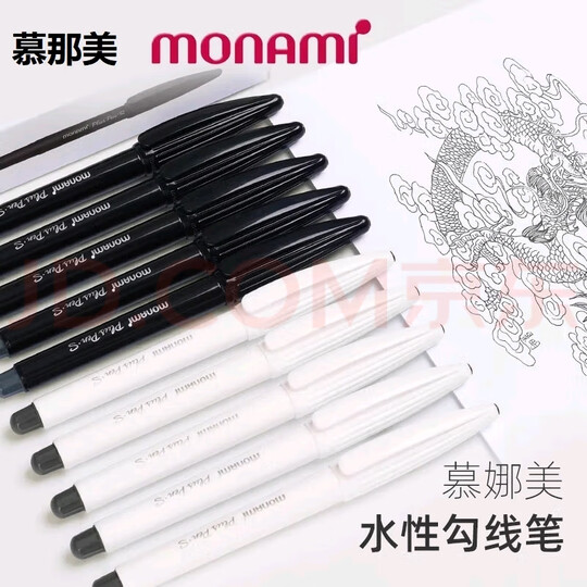 慕那美(monami)04031011 纤维笔水性勾线笔中性笔 白杆黑芯 12支/盒