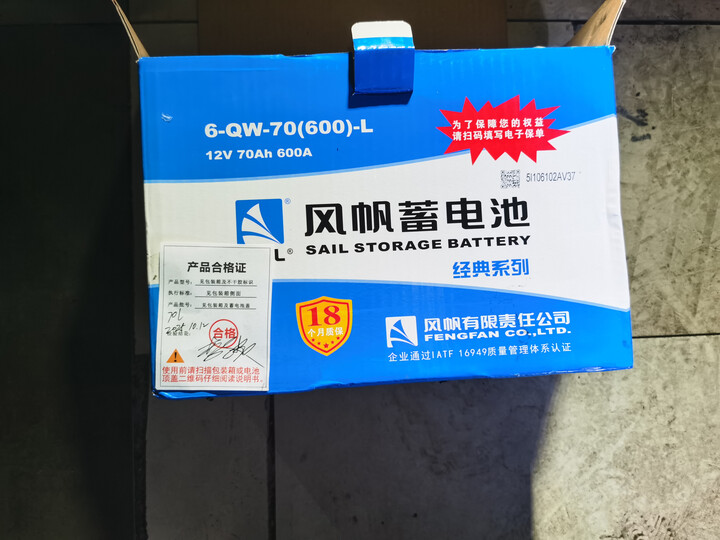 风帆(sail)汽车电瓶蓄电池L3450同6-QW-70 大众CC迈腾 以旧换新原厂适配