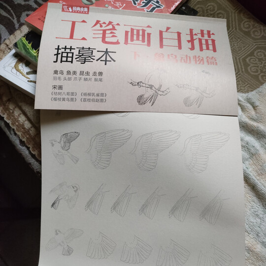 2册《工笔画白描描摹本》上下基础训练篇强化提高篇花卉植物禽鸟动物绘画临摹本入门零基础书教材超级线条浅印