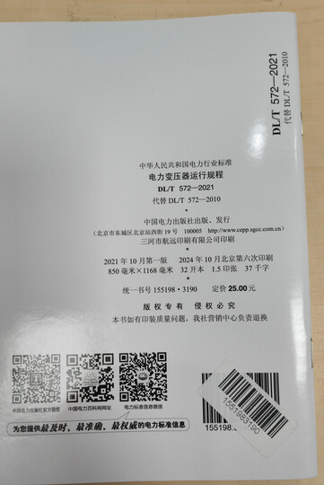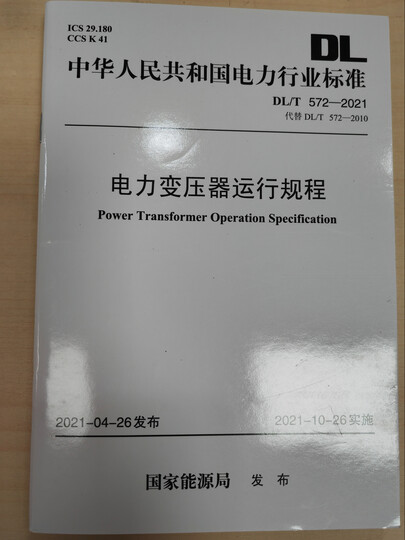 中华人民共和国电力行业标准(DL/T 572-2021·代替DL/T 572-2010):电力变压器运行规程