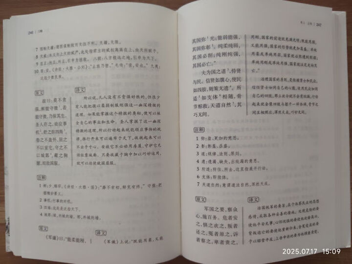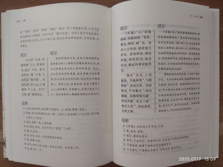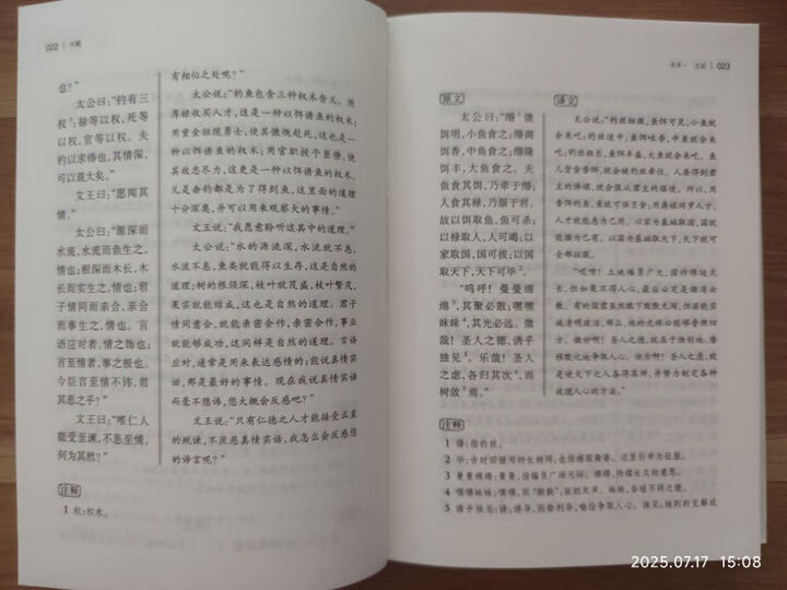 《六韬 三略》是岳麓书社“古典名著全本全注全译”系列之一,2024年第1版,24年第2印。32开精装布脊,装帧古朴,印刷清晰,字体大小合适。正文、译文同页双开也比较适合阅读。