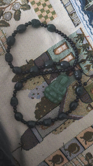 和田玉吊坠挂绳十八罗汉项链青玉圆珠油青链绳墨玉炫石为玉男女款 十八罗汉项链