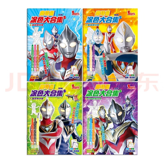 【赠蜡笔】奥特曼涂色大合集全套4册官方正版图书 官方动漫周边特利迦奥特曼迪迦戴拿盖亚奥特曼涂色画 3-6岁儿童学画本图画书男孩绘画益智玩具 幼儿园填色画男孩子玩具7岁以上 动手动脑早教幼儿园宝宝儿童书