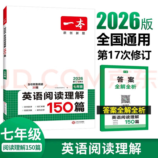 一本英语阅读理解150篇七年级上下册 2026版初中英语词汇积累阅读能力语法同步专项训练初一练习册