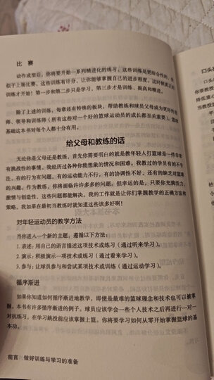 儿子一直在学习篮球,还专门参加了篮球培训班,教练就是用这本书来备课的,他看见就让我给他买一本。我了解了一下,这书还是比较全面的系统的去介绍了篮球的一些基本知识,作为入门级想学好篮球的同学还是很不错的,通俗易懂。希望儿子看了以后有所认识,有所提高。