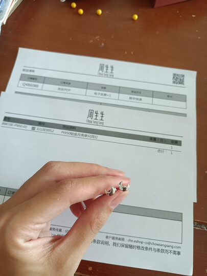 周生生 Pt950铂金耳钉月亮白金单边耳饰男女89815E定价