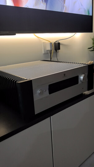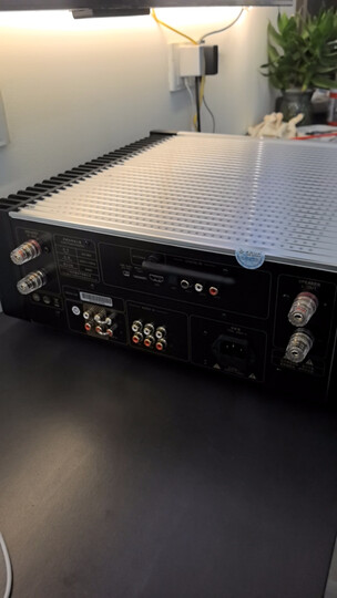 心心念念的宝贝终于到手了,迫不及待拆箱查看,真重,看这分量就知道起来用料很足,做工也精致,不愧是功放界的劳斯莱斯,真有点那种感觉。接上音箱放了一首腾格尔的天堂,给力,比原来的小马哈功放一耳朵就能听出差别,给力
