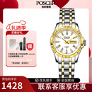 宝时捷(POSCER)黑色钢带男士手表双日历夜光全自动机械表商务男表保时捷6032 6032L.VVW介金白盘女