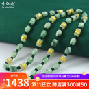 素江南天然翡翠项链男女款椭圆形飘绿玉珠子金镶玉项链玉珠子路路通挂绳带证书