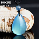 宝卡伊 天然海蓝宝吊坠男女情侣水晶吊坠项链925银镶嵌大气毛衣链 宝石级冰种水滴款9-10g