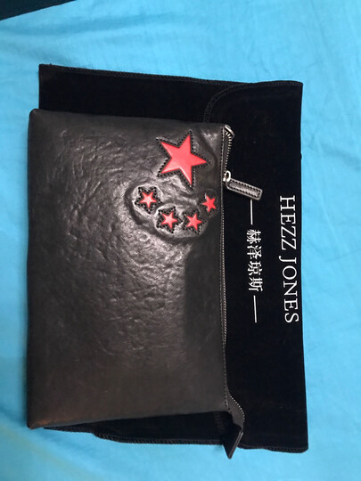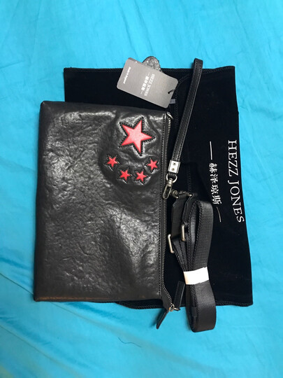 赫泽琼斯真牛皮手包男进口意大利手腕包青年时尚潮流简约信封包英伦单肩包 黑色进口意大利牛皮