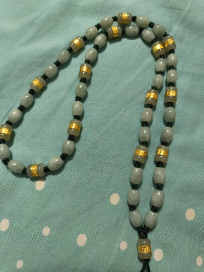 含15颗金镶玉珠墨绿色绳共60厘米长