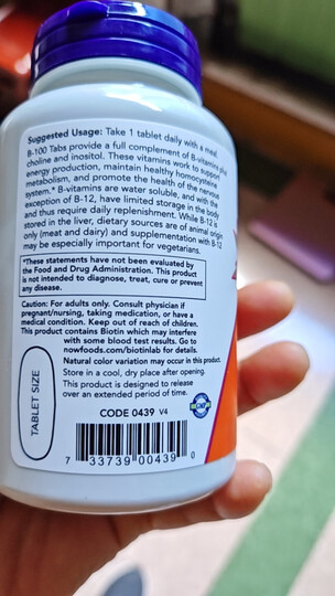 NOW FOODS缓释B-100 100片 完整B族GMP认证易于吞服