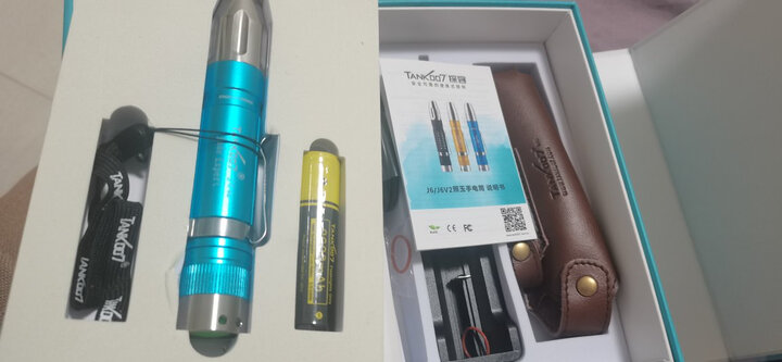 TANK007玉石鉴定专用强光手电赌石琥珀蜜蜡翡翠原石灯看玉石纹理聚光J6V2 J6V2升级版【蓝壳-白光】 高配套装(2电池+座充+USB线+充电器+电筒套)