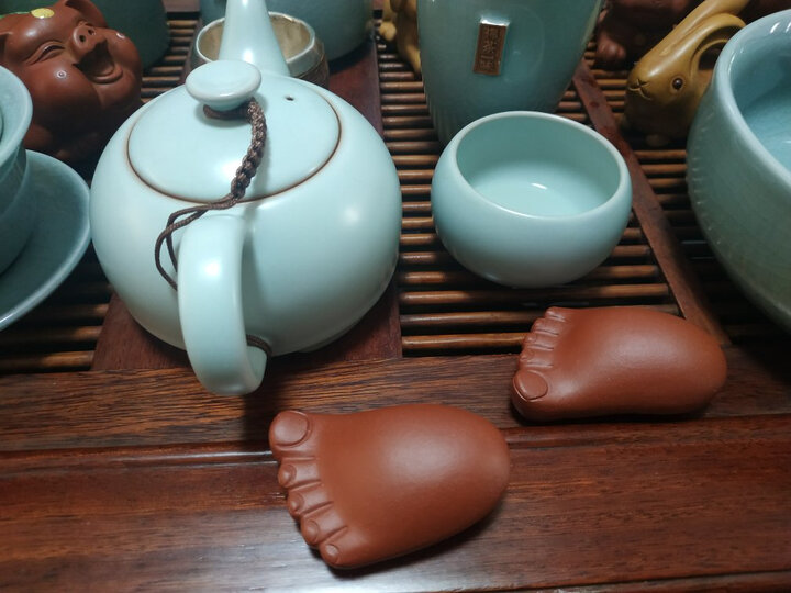 谦君 紫砂茶宠摆件 原矿底槽青功夫茶道茶桌摆件 创意可养茶玩雕塑知足常乐 一对