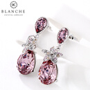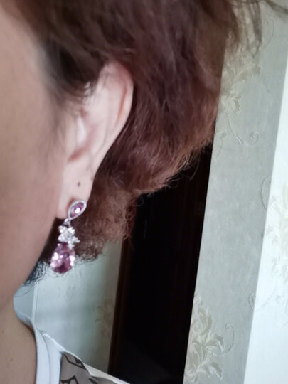Blanche蓝水晶耳环耳饰女气质水滴耳环高级感耳坠 母亲节礼物无耳洞耳夹 耳针款-紫色
