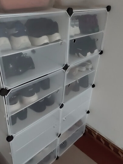 乐活时光简易鞋架多层组装膜片防尘魔片鞋柜金属支架宿舍家用玄关收纳柜 白色双排8层-透明门