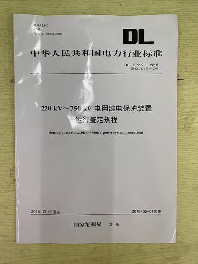 2020年新版 DL/T 559-2018 220kV~750kV电网继电保护装置运行整定规程
