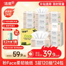 洁柔抽纸 粉Face柔韧3层120抽*24包 亲肤柔软 原生木浆面巾纸 整箱