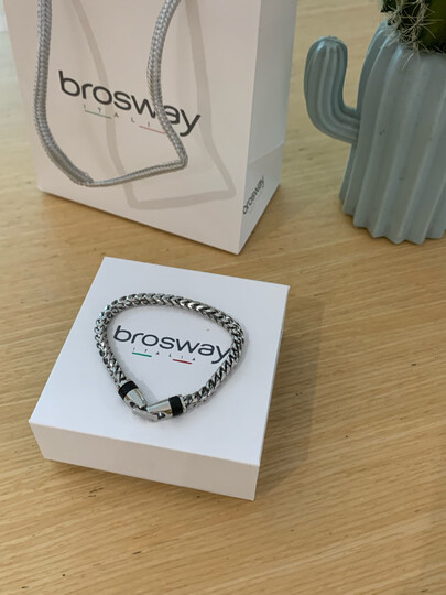 BROSWAY欧美时尚古巴男士钛钢龙骨链轻奢小众手链饰品生日送男友礼物 BNF14A 银白色+黑 链长200mm