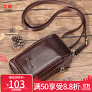 吉旺(JIWANG)2023新款潮商务真皮腰包男手机腰包穿皮带全头层运动多功能小背包 深棕色