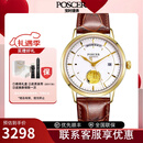 宝时捷(POSCER)新款手表男全自动机械表精钢防水女士情侣潮流保时捷男表腕表6601 介金白盘男款棕带(6601MK.GFW)