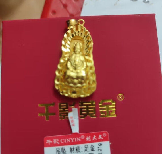 千影珠宝黄金项链坠子男女款9999足金火焰观音吊坠纯金菩萨挂坠按克重 重约8.31-8.6g(含工费20)