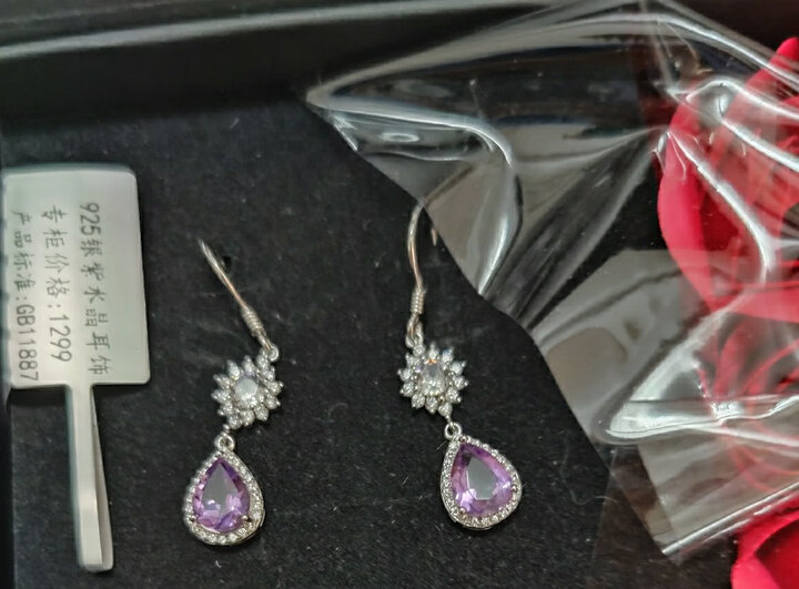 TEUCER紫水晶耳环时尚长款天然宝石钉水滴耳坠耳饰生日礼物女友简约母亲 水滴紫水晶耳环+精美礼盒